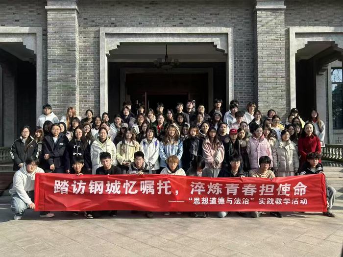 2025年12月16日,马克思主义学院思想道德与法治教研室王静波老师带领25届美术普本班、视觉传达班、环境设计班全体同学,走进梅钢工业文化旅游区,开展“踏访钢城记忆嘱托,淬炼青春担使命”实践教学活动。将思政课堂搬到工业一线,打造了一堂生动鲜活的行走思政课。