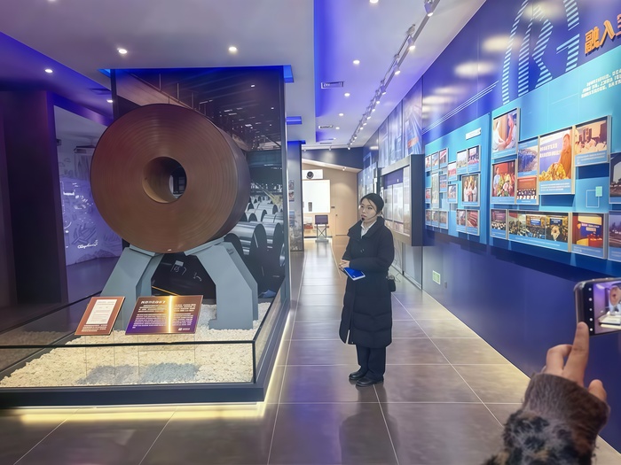 厂史陈列馆内,泛黄老照片、老旧工具与新型钢材样品、智能设备模型形成鲜明对比,清晰勾勒出企业从艰苦创业到科技突破的成长轨迹。核心展区内,钢材成品陈列与生产流程纪录片生动还原了铁矿石到精品钢材的蜕变,绿色发展展区则通过废气净化、废水处理、余热发电、水资源零排放等技术成果,生动诠释了梅钢“工业与生态共生”的发展理念。